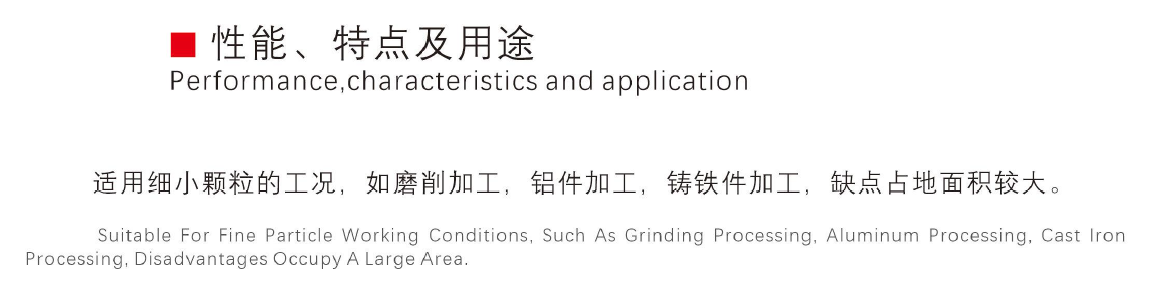 Suitable For Fine Particle Working Conditions, Such As Grinding Processing, Aluminum Processing, Cast Iron Processing, Disadvantages Occupy A Large Area.